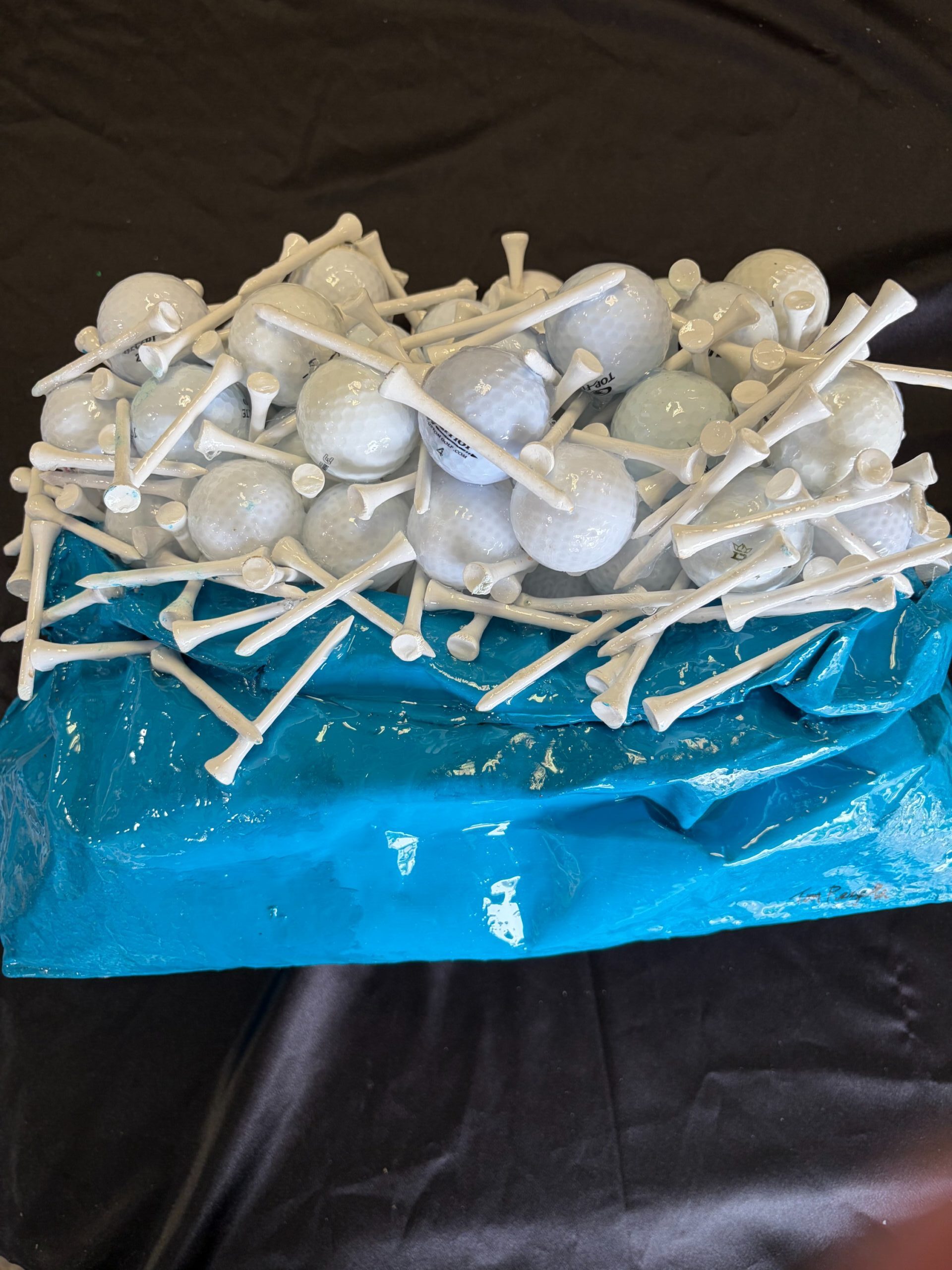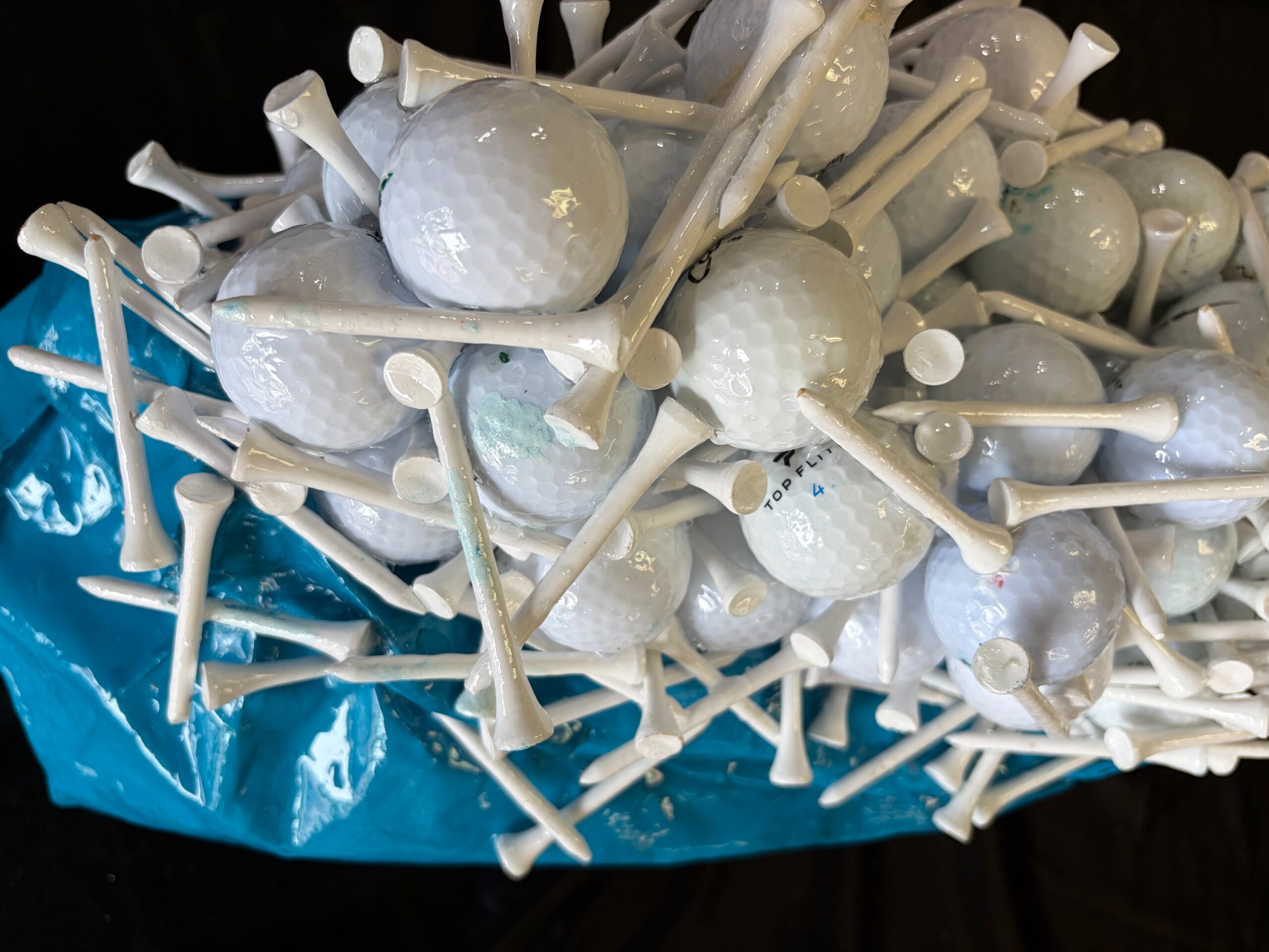 “Bag O’ Balls” is painted with acrylic paint, coated in resin by Tom Pergola Fine Art
