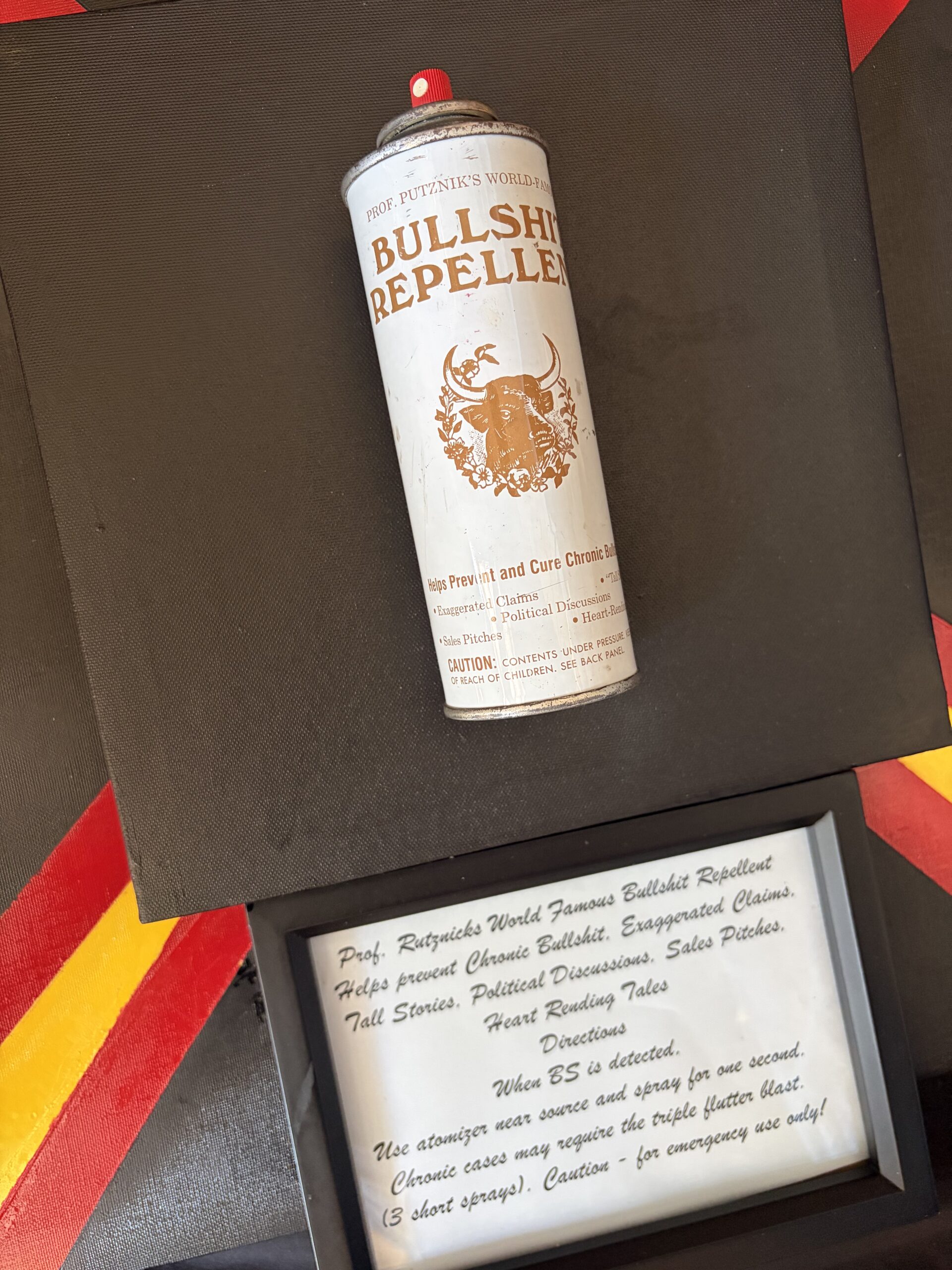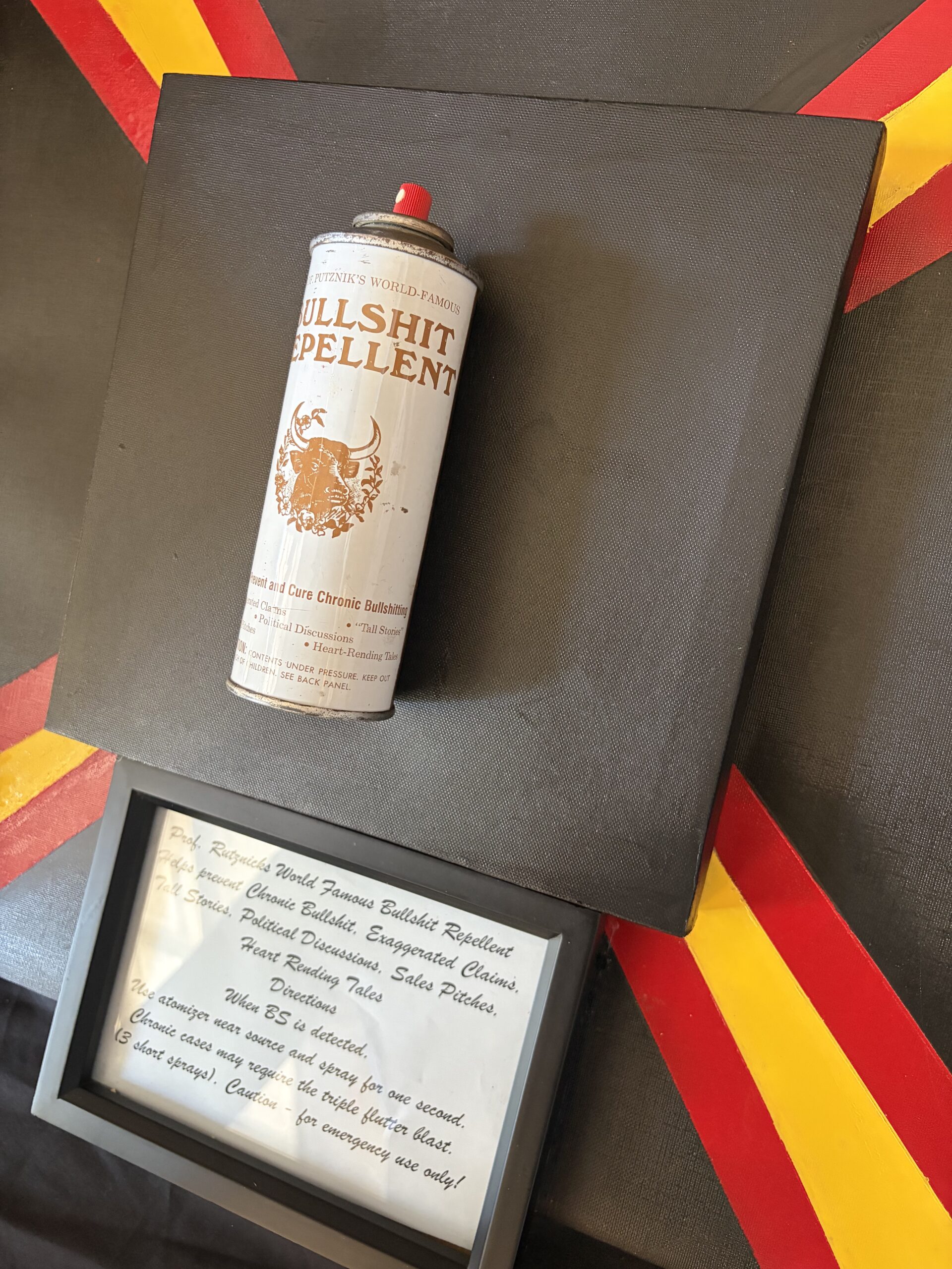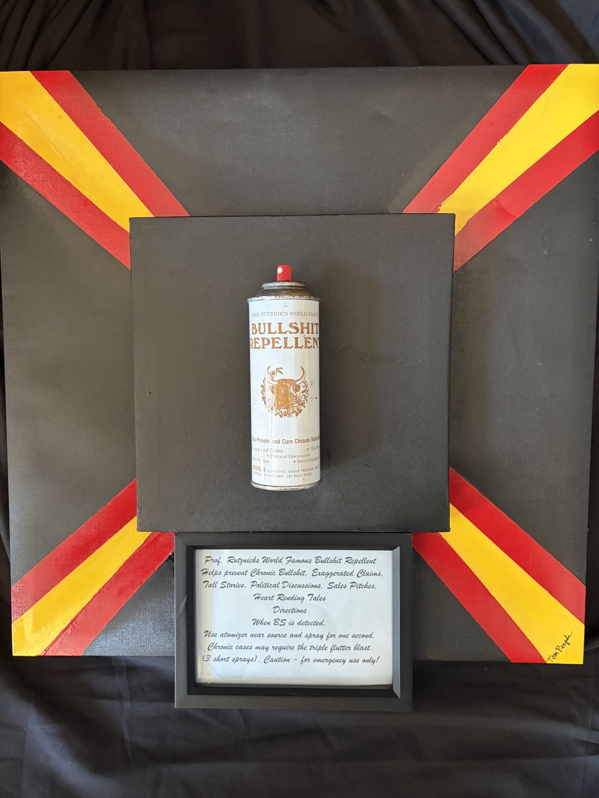 “Bullshit Repellent” is painted with acrylic paint, coated in resin by Tom Pergola Fine Art