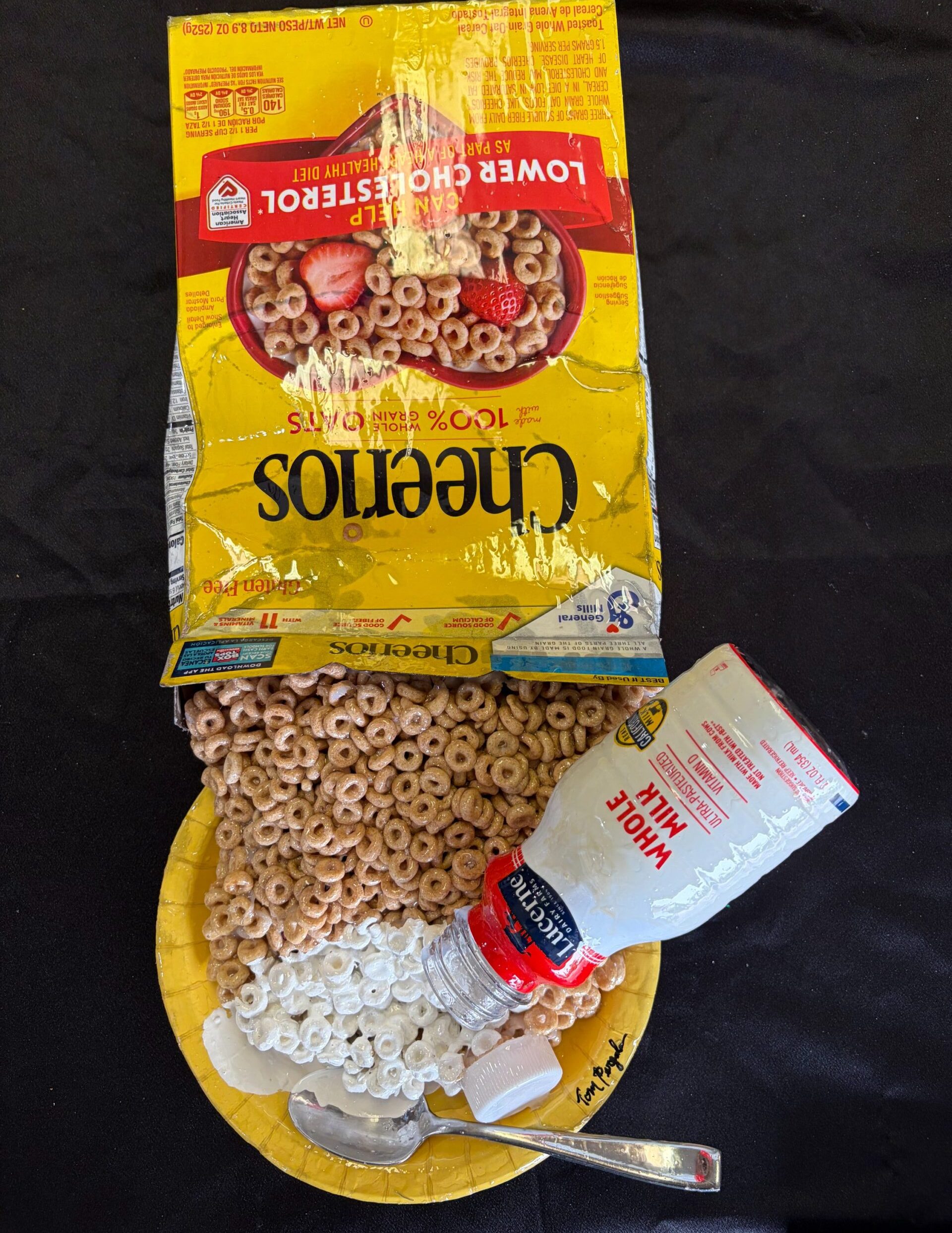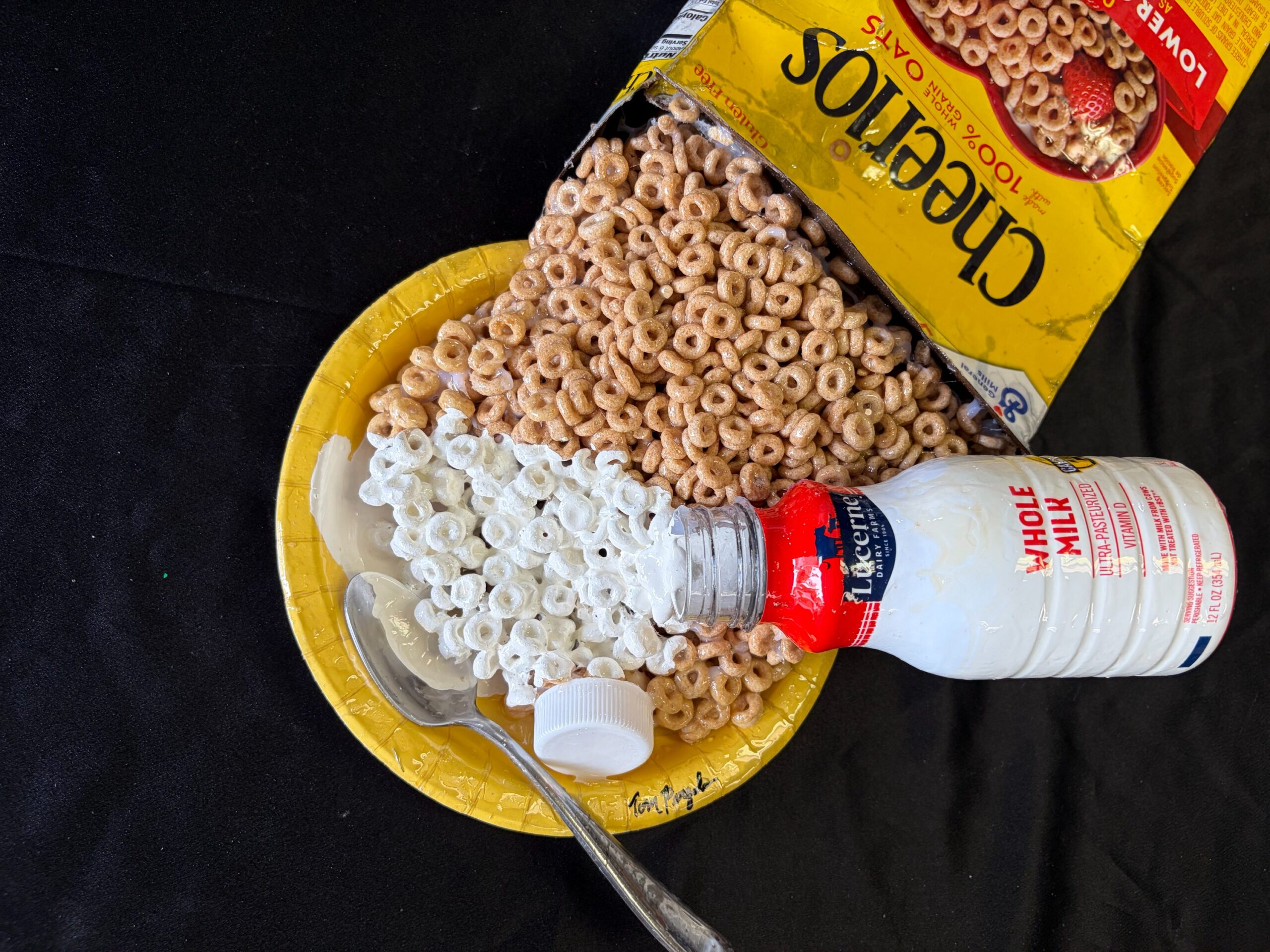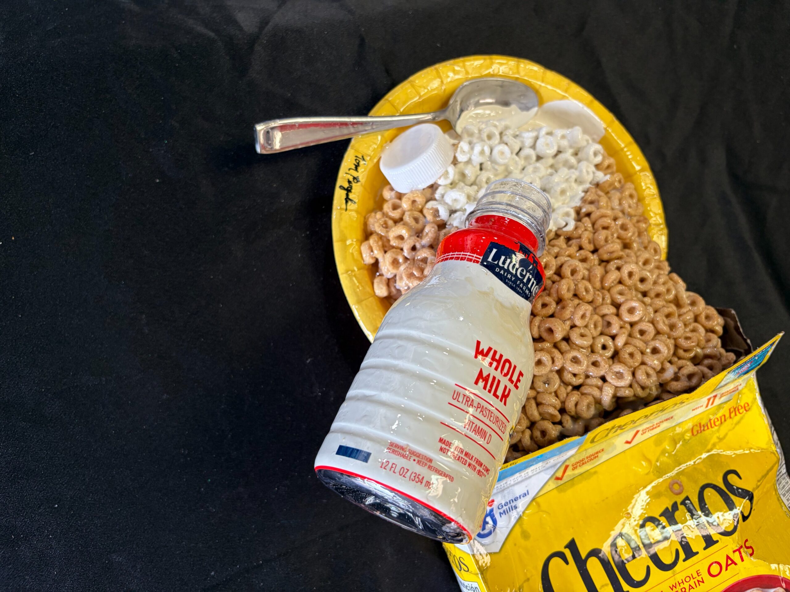 “Cheerios With Milk” is painted with acrylic paint, coated in resin by Tom Pergola Fine Art