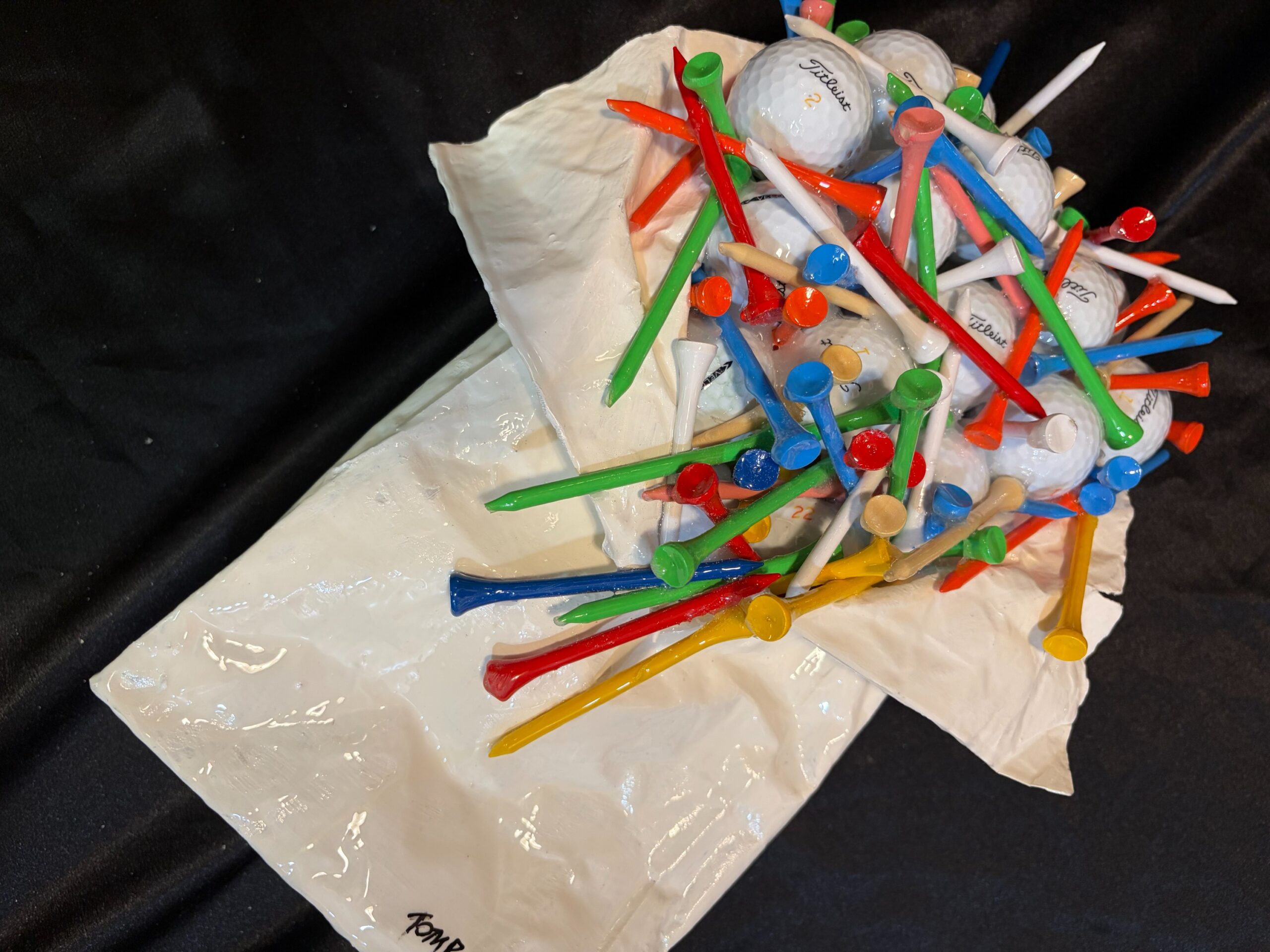“It Takes A Lot Of Balls” is painted with acrylic paint, coated in resin by Tom Pergola Fine Art