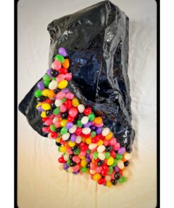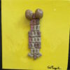This sculpture can hang up side down on a wall or be placed on a tabl 13 1/2″ X 10 1/2″ X 5 ” Coated in resin<